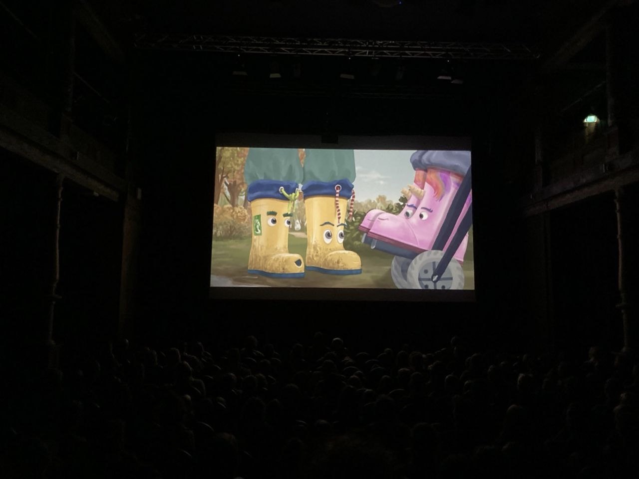 Ein Großteil des Teams war zum Auftakt des Festivals bei der Vorstellung am Dienstag früh dabei. Wir durften viele Fragen aus dem Publikum, das sich im fast ausverkauften Astoria-Saal des Passage Kinos versammelt hatte, beantworten. Auch die anderen beiden Vorstellungen am Wochenende in der Schauburg und in der Schaubühne waren ausverkauft und voller interessierter Kinder, deren präzisen Fragen zu Schnürsenkeln, Gummisohlen und Reiterstiefeln wir uns gerne gestellt haben.
