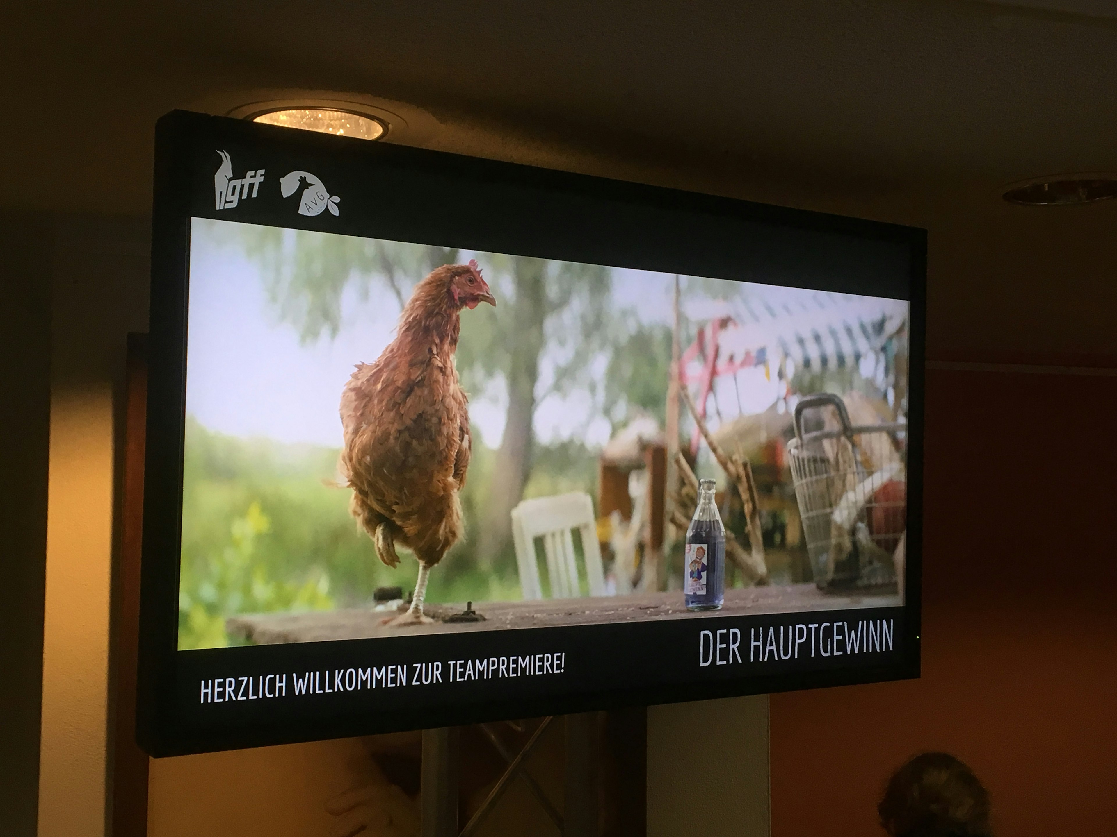 Lila Brause, Zitronenlimonade und Sekt gab es zum Anstoßen, eine von Huhn Eugenie liebevoll ausgewählte Körnermischung zum Knabbern, eine Requisitenausstellung inkl. originalem Hauptgewinn-Kronkorken und Planbuch von Emiliana zum Durchblättern, und Making-Of Fotos auf zwei Bildschirmen. Zum Schluss taumelten 140 geladene Gäste, im Herzen erwärmt und von Hauptgewinn-Musik umarmt, inspiriert und lila-zitronengelb geblendet nach Hause.