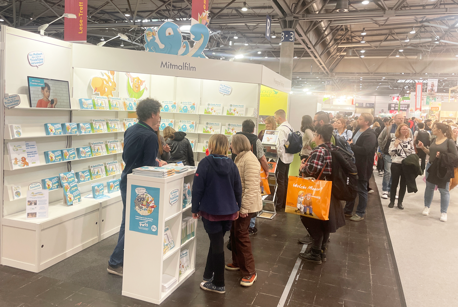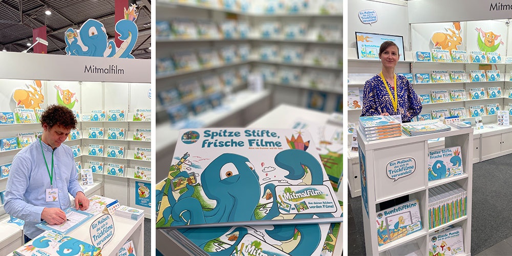 Auf der Leipziger Buchmesse 2025 haben wir an unserem Mitmalfilm Stand das neue Buch präsentiert und sind begeistert von den Reaktionen. Der Tintenfisch mit dem unkonventionellen Namen iiiiiiiif auf dem Cover kam bei Klein und Groß sehr gut an.