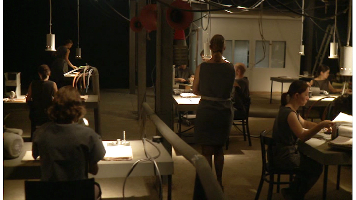 Die eifrige Angestellte Anja arbeitet im Großraumbüro der innovativen Firma. In den Arbeitsabläufen zeigt sich leider das Gegenteil von Modernität. Lochen, Tackern, Briefmarken kleben sind streng getrennte Bereiche, die den Alltag im Büro zu einer Maschinerie der Monotonie machen.