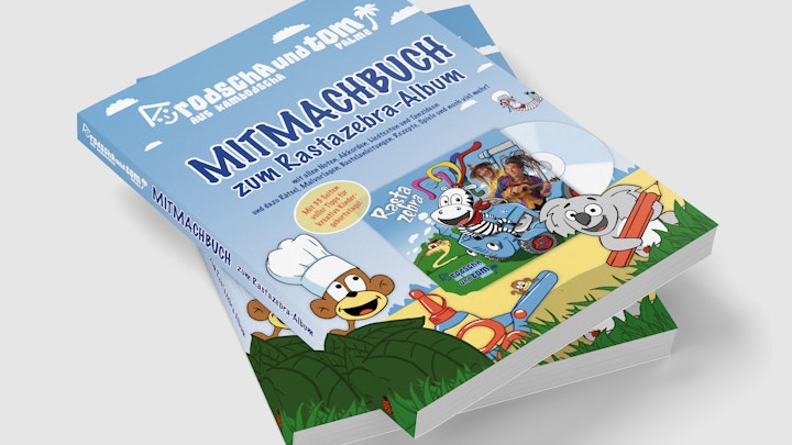 Basierend auf dem Album "Rastazebra" von Rodscha und Tom (hier als CD erhältlich und hier auf Spotify zu hören) entstand ein 144-Seiten starkes Liederbuch mit allen Noten, Gitarrenakkorden und Bewegungs-Mitmachtipps. Dazu gibt es thematisch zu jedem Lied Rätsel, Basteltipps, Rezepte und Spiele, die mal allein und mal gemeinsam mit dem Kind erlebt werden können. Allein 33 Seiten sind voller Tipps für Kindergeburtstagsparties.